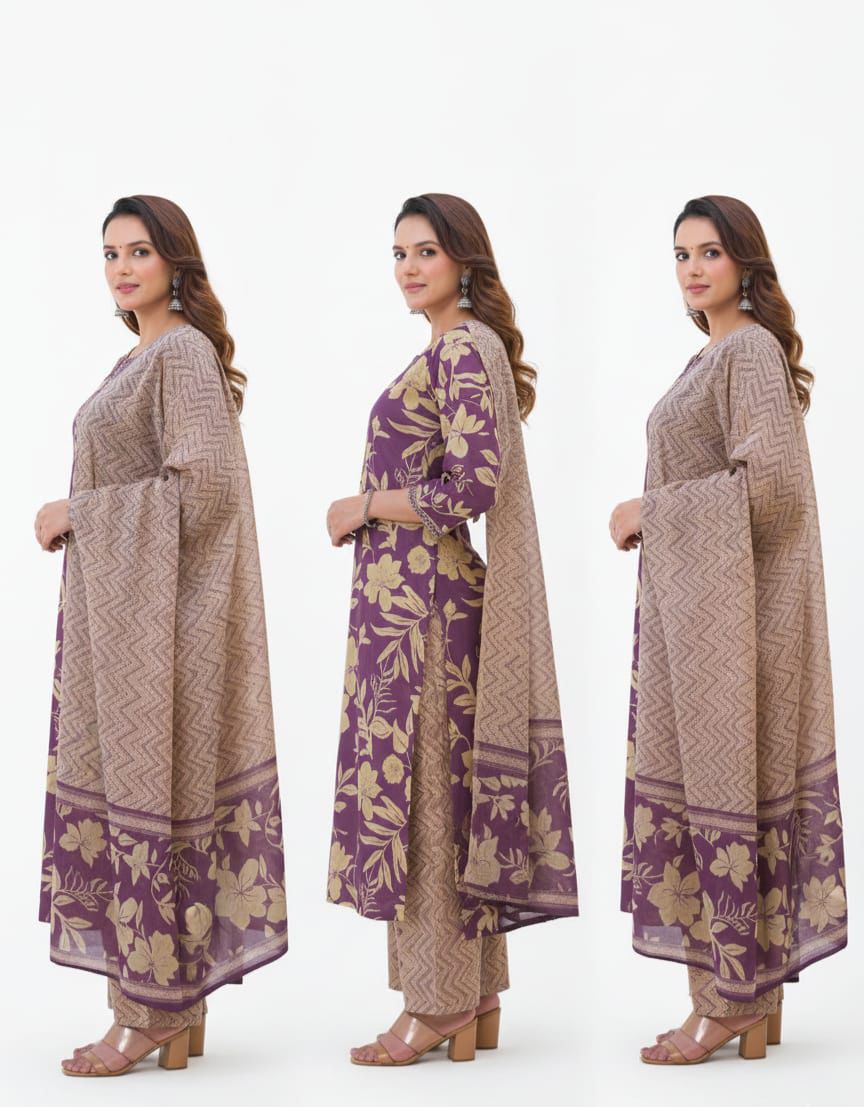 Elevate your ethnic wardrobe with this sophisticated salwar kurta duppatta ensemble, fashioned from 100% pure cotton. This complete three-piece set combines traditional aesthetics with contemporary comfort, featuring a well-proportioned kurta, matching salwar, and graceful duppatta. The natural cotton fabric provides exceptional breathability and gentle care for sensitive skin, while its inherent strength ensures the garment withstands regular wear without compromising quality. Perfect for both everyday elegance and festive occasions, this versatile set adapts to various styling preferences. The premium cotton construction resists shrinkage and fading, maintaining its original charm and comfort season after season, making it an investment piece for discerning customers.