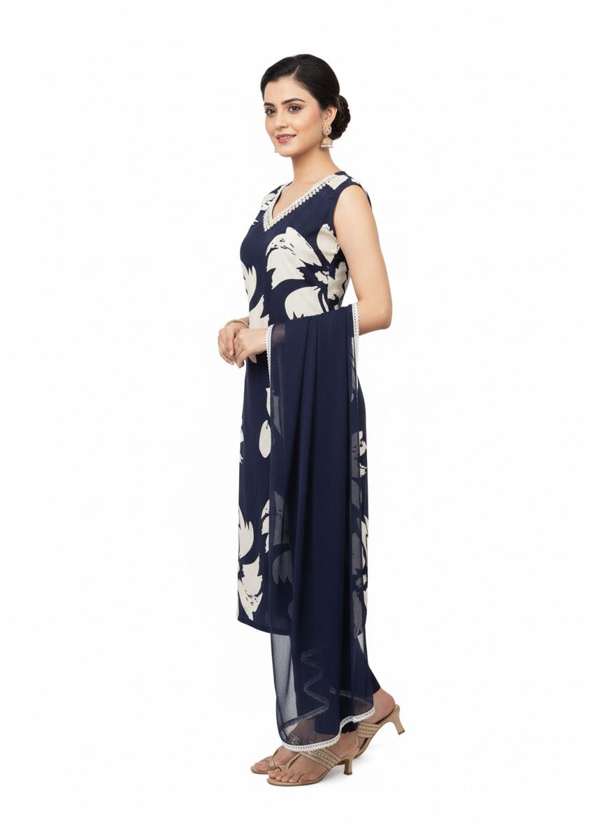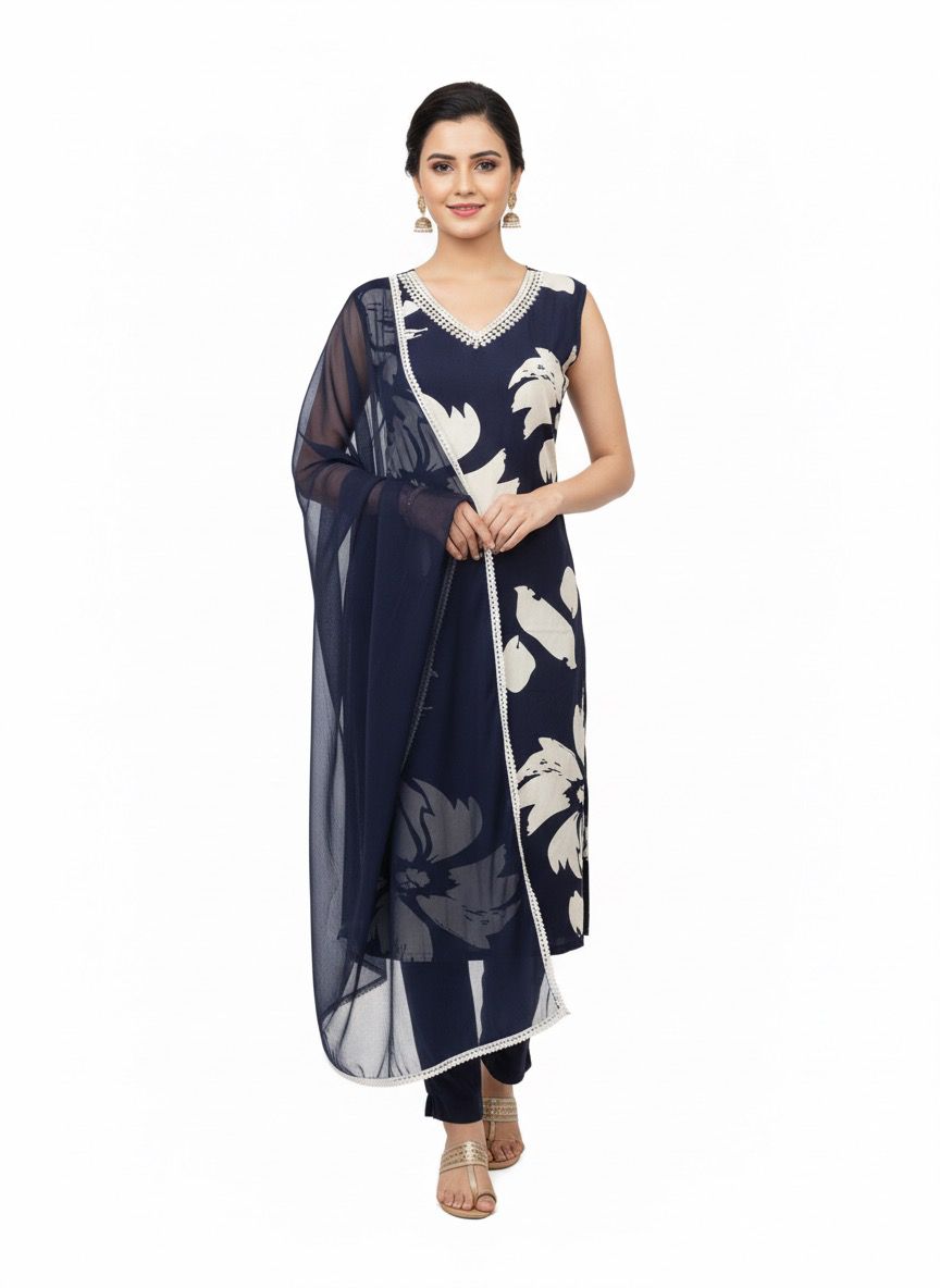 Crafted from premium 100% cotton, this three-piece salwar kurta set delivers comfort and elegance for everyday wear. The pre-washed fabric ensures a soft, lived-in feel from the first wear, eliminating shrinkage concerns. The coordinated dupatta completes the ensemble, offering versatility for both casual and semi-formal occasions. Breathable cotton construction makes it ideal for warm climates, while the traditional silhouette maintains timeless appeal. A wardrobe essential that combines quality craftsmanship with practical durability.