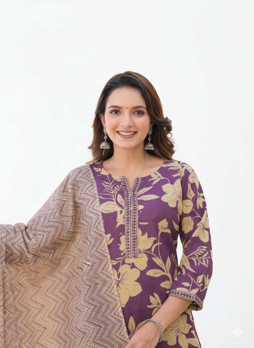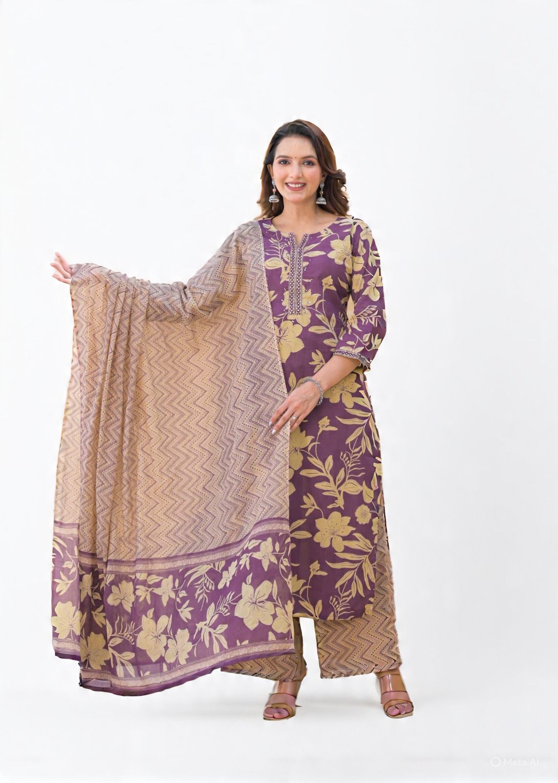 Elevate your ethnic wardrobe with this sophisticated salwar kurta duppatta ensemble, fashioned from 100% pure cotton. This complete three-piece set combines traditional aesthetics with contemporary comfort, featuring a well-proportioned kurta, matching salwar, and graceful duppatta. The natural cotton fabric provides exceptional breathability and gentle care for sensitive skin, while its inherent strength ensures the garment withstands regular wear without compromising quality. Perfect for both everyday elegance and festive occasions, this versatile set adapts to various styling preferences. The premium cotton construction resists shrinkage and fading, maintaining its original charm and comfort season after season, making it an investment piece for discerning customers.